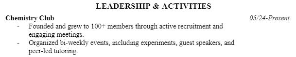 This is one of the most underrated parts of your resume. Even if you don’t have job experience, showing leadership, involvement, and consistency looks great. Clubs, sports, volunteering, school events, anything where you contributed or took initiative counts here.